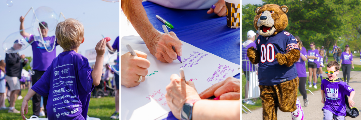 Can't make it to Chicago? DASH with us wherever you are! Turn the streets of your own neighborhood purple by running, walking, biking, hiking, or swimming anytime in June.